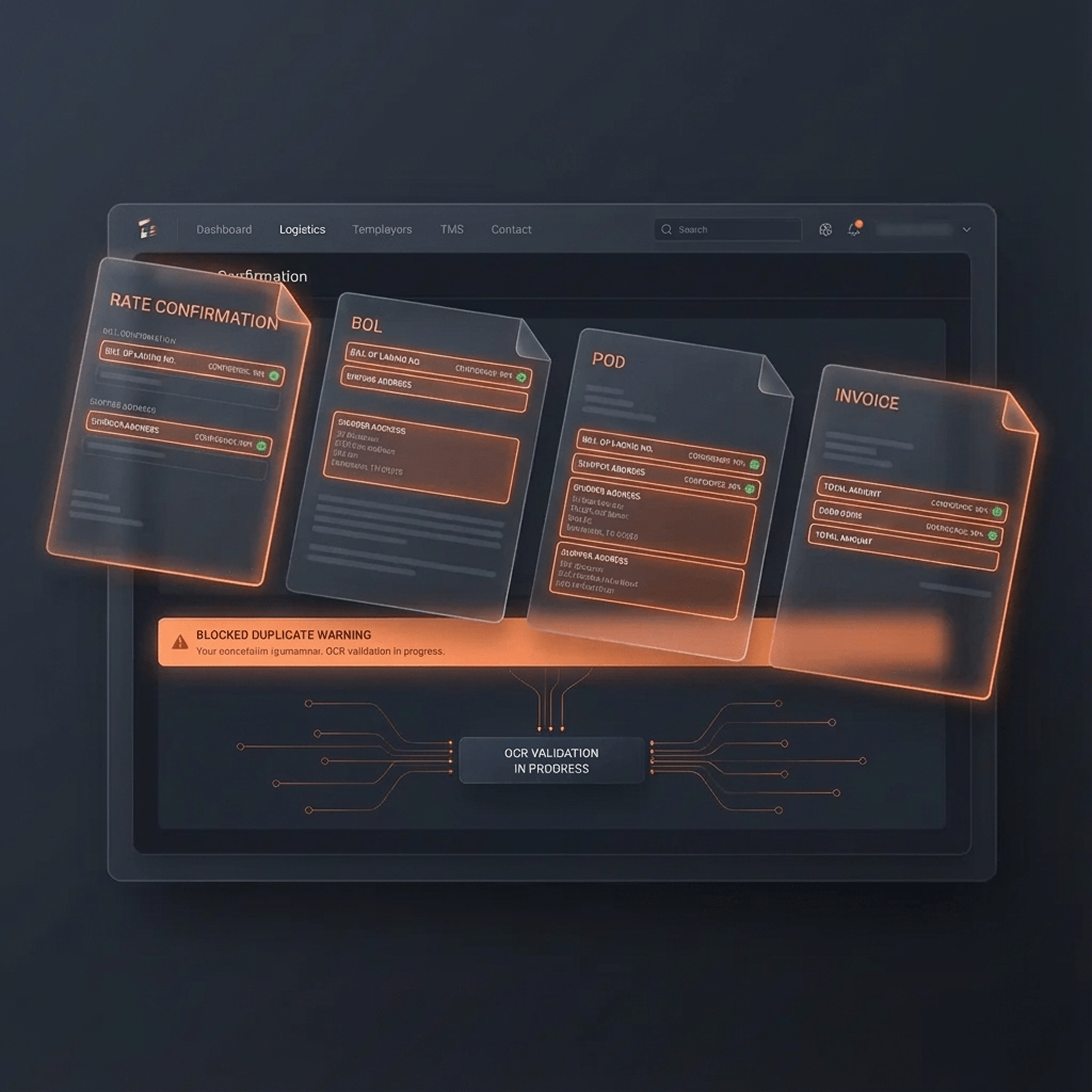 Parse rate cons, BOL/PoD, and invoices in minutes with field-level confidence, auto-normalize to TMS, and block missing/duplicate data.